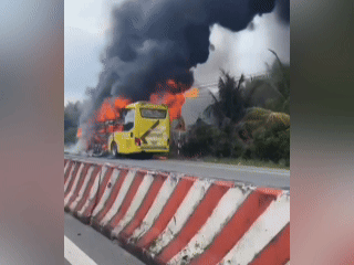 Xe giường nằm chở hơn 20 khách bốc cháy trên quốc lộ